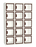 Lockerkast PDC-330, 3-koloms, 15-deurs, transparant venster, lichtgrijs