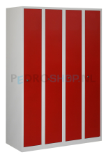 Garderobekast PDC-190, 4-koloms, 4-deurs, 120 cm breed, rood