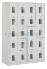 Lockerkast PDC-300, 4-koloms, 20-deurs, 120 cm breed, lichtgrijs