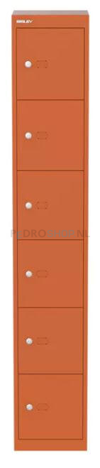 Bisley Basic lockerkast, 30,5 cm breed, 30,5 cm diep, 1-koloms, 6-deurs, oranje