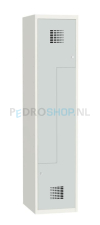 Met een kolombreedte van 40 cm biedt deze uitvoering ruime opbergmogelijkheden per gebruiker. Voor locaties waar de beschikbare ruimte beperkter is, is er ook een variant met een kolombreedte van 30 cm. Beide uitvoeringen zijn leverbaar in meerdere kleuren en deurcombinaties, zodat de kast perfect aansluit op de gewenste inrichting.