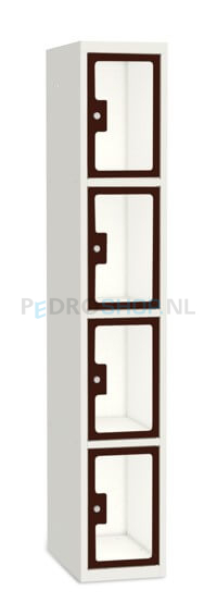 SQ Classic lockerkast, 1-koloms, 4-deurs, transparant venster, bruin, h180*b30*d50 cm