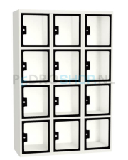 SQ Classic lockerkast, 3-koloms, 12-deurs, transparant venster, zwart, h180*b120*d50 cm