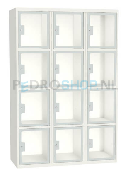 SQ Classic lockerkast, 3-koloms, 12-deurs, transparant venster, lichtgrijs, h180*b120*d50 cm