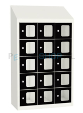 SQ Classic kantine locker, 3-koloms, 15-deurs, transparant venster, zwart
