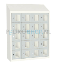 SQ Classic kantine locker, 4-koloms, 20-deurs, transparant venster, lichtgrijs