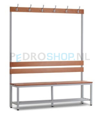De PDC-H100 garderobezitbank met 4 dubbele garderobehaken is een aanvullend product om de kleedruimte volledig in te richten, geordend en opgeruimd te houden. De PDC-H150 garderobezitbank is geschikt voor plaatsing tegen de muur, maar ook uitermate geschikt voor ruggelingse plaatsing voor een dubbele uitvoering voor bijvoorbeeld plaatsing centraal in de ruimte.