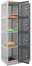 De gaas lockerkast is verkrijgbaar in vier verschillende kleuren, hierdoor is er voor elke interieurstijl een passende optie! Deze lockerkast is niet alleen praktisch, maar heeft ook een stijlvol ontwerp. Het gaaspatroon geeft de kast een moderne uitstraling en zorgt ervoor dat de opgeslagen items goed geventileerd blijven.