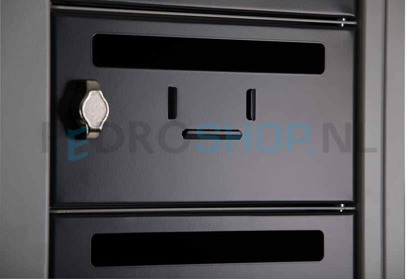 De postvakkenkast beschikt over 2 centrale deuren. Deze centrale deuren bieden toegang voor het eenvoudig verdelen van de post. De centrale deuren beschikken over een cilinderslot. Ieder postvak is afzonderlijk voorzien van een eigen valgrendelsluiting. Ook is er de mogelijkheid om de postvakken te voorzien van cilindersloten. Op aanvraag kunnen er ook mechanische cijfersloten of elektronische pincode sloten gemonteerd worden op de postvakken. Let wel op dat bepaalde sloten een levertijd kennen, dit kan op aanvraag besproken worden.