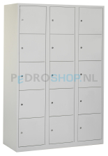 Lockerkast PDC-T310, 3-koloms, 15-deurs, 120 cm breed, lichtgrijs