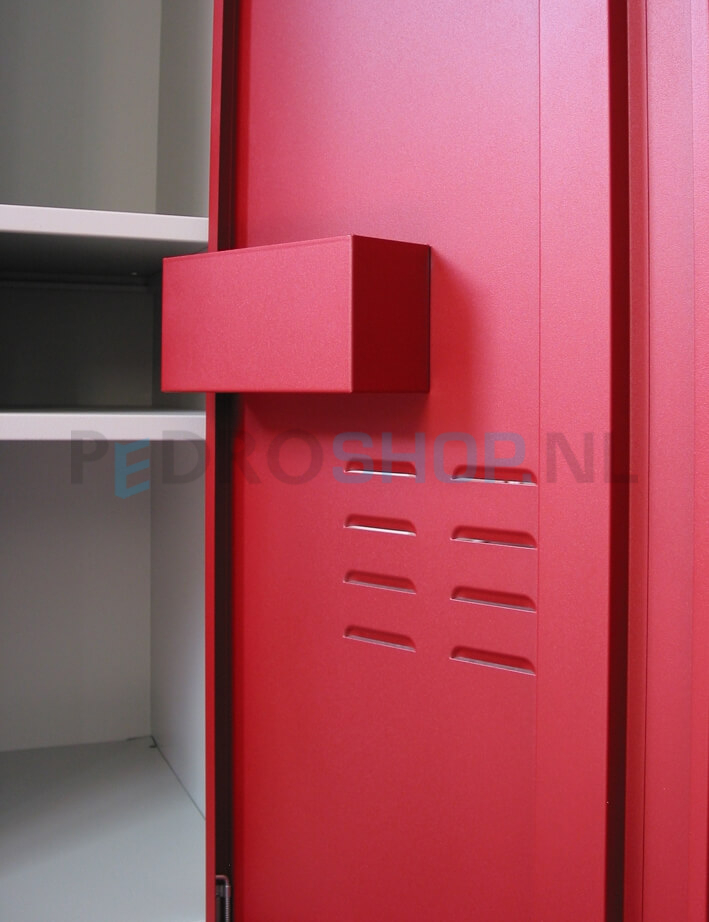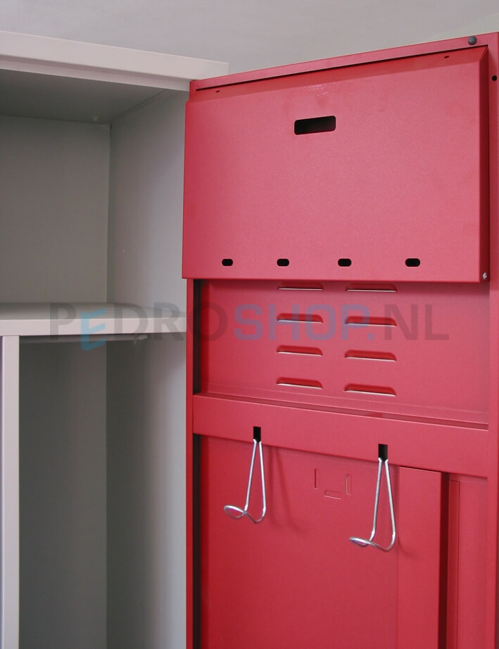 Brandweer garderobekast PDC-208, 2-koloms, 2-deurs, rood