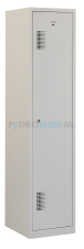 De PDC-T210 garderobekast is ideaal voor het scheiden van schone en vuile kleding, of voor het gescheiden opbergen van privé- en werkkleding. Achter de enkele deur bevindt zich een praktische schoon/vuil indeling met een scheidingswand, een legbord en aan beide zijden een kledingstang met haken.