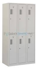 Garderobekast PDC-180, 3-koloms, 6-deurs, 90 cm breed, lichtgrijs