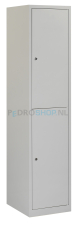 De PDC-T220 is een 1-koloms, 2-deurs garderobekast met een verdeelschot, ideaal voor het scheiden van schone en vuile kleding of privé- en werkkleding. Achter beide deuren bevindt zich een kledingstang met haken, waarbij het vak in het midden wordt verdeeld door een vaste scheidingswand.