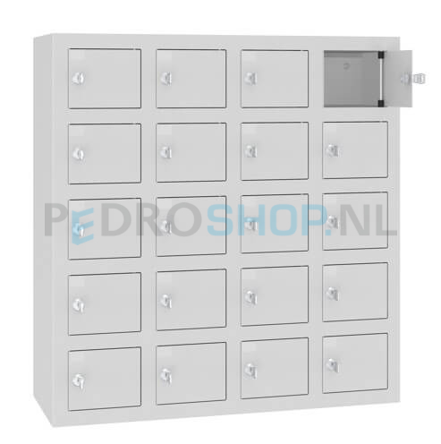 Telefoonlocker HFS, met oplaadfunctie, 4-koloms, 20-deurs, lichtgrijs