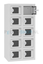 Telefoonlocker HFS, met oplaadfunctie, 2-koloms, 10-deurs, zichtvenster, lichtgrijs