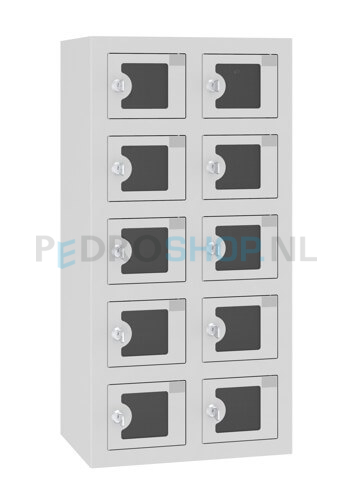 Telefoonlocker HFS, met oplaadfunctie, 2-koloms, 10-deurs, zichtvenster, lichtgrijs