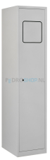 De PDC-715 wasopvangkast biedt een hygiënische en efficiënte oplossing voor het verzamelen van vuile werkkleding binnen bedrijven, zorginstellingen, productieomgevingen en sportaccommodaties. Medewerkers kunnen hun kleding eenvoudig via het bovenluik in de kast deponeren, waarna alles direct wordt opgevangen in een linnenzak (niet meegeleverd). Aan de binnenzijde bevinden zich vier stevige ophanghaken waaraan de linnenzak moeiteloos kan worden bevestigd.