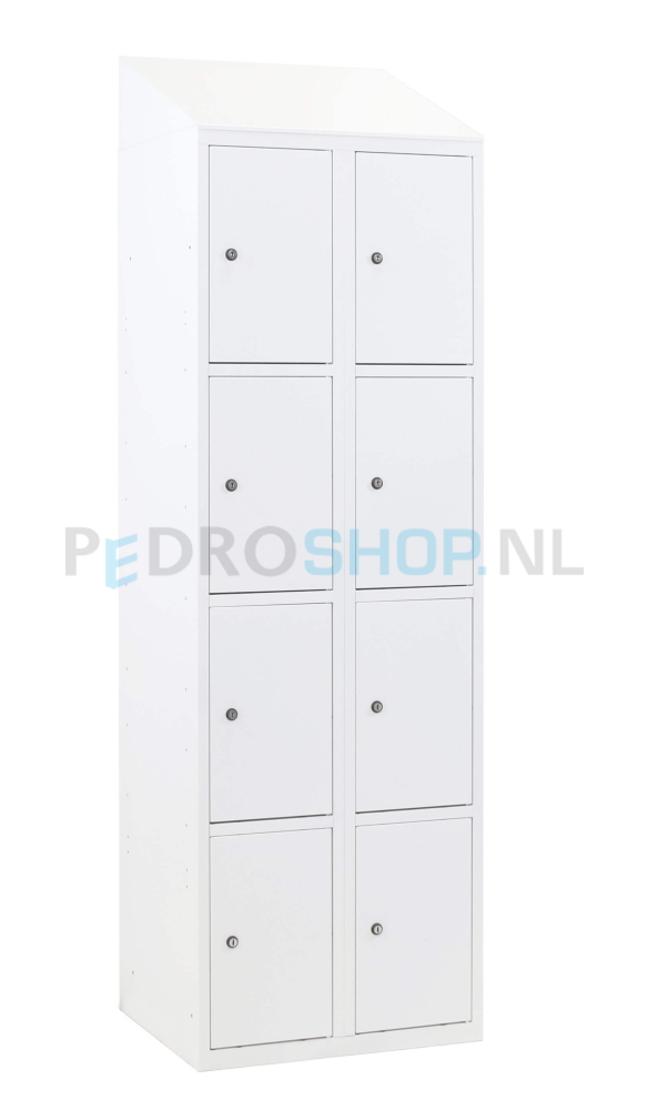 De kap heeft aan de hoogste zijde een hoogte van 20 cm, waardoor de totale hoogte van de kast uitkomt op 200 cm. De montage is eenvoudig en geschikt voor zowel garderobekasten als lockerkasten.