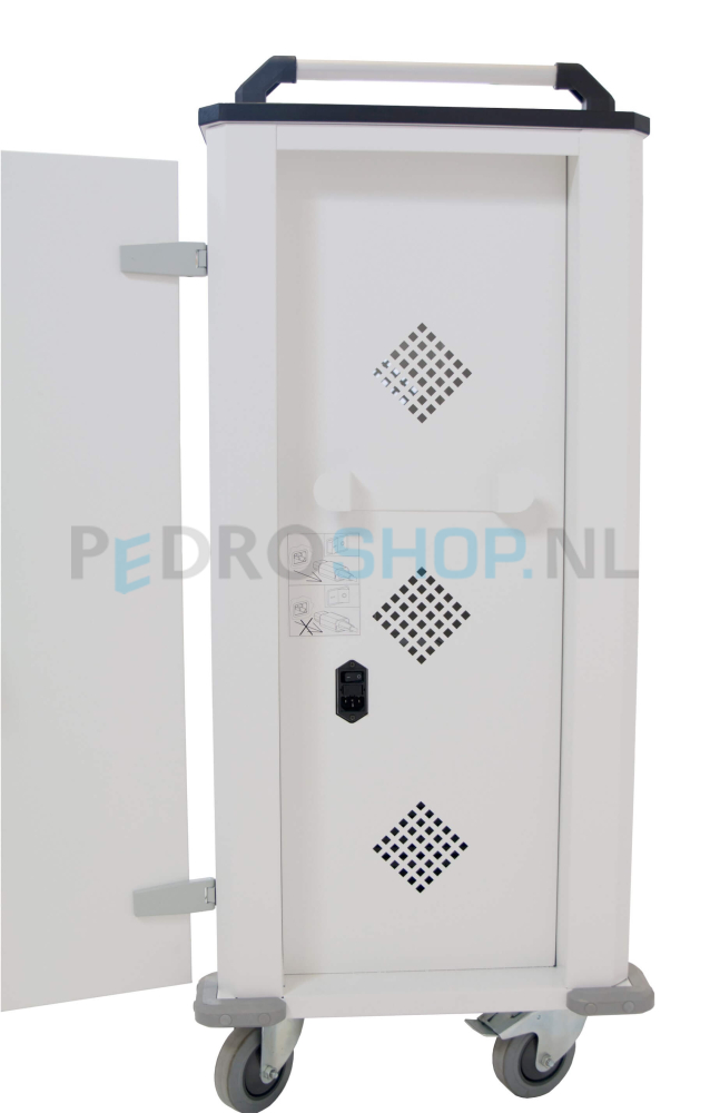 Deze SQ laptop trolley is geschikt voor de opberging van 26 laptops (2 rijen van 13 vakken naast elkaar). Tevens is de ruimte te gebruiken voor tablets of smartphones. De laptop trolley is voorzien van stroomvoorziening voor alle laptops (ieder vak is voorzien van een stroompunt).