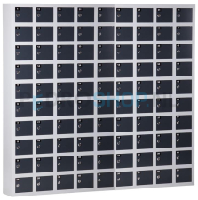 De afmetingen van de lockerkast zijn: h153*b165*d20 cm. De afmeting per mini locker is: h11,8*b12,6*d11,7 cm. De locker kent voor de deuren de kleurcode: Antraciet Ral 7016 en voor de ombouw: Lichtgrijs Ral 7035.