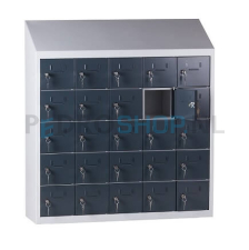 Met een afmeting van h109 x b100 x d30 cm biedt de kast voldoende ruimte voor 25 mini lockers, verdeeld over 5 kolommen met ieder 5 lockers. Elke locker heeft een afmeting van h16 x b15 x d27 cm.