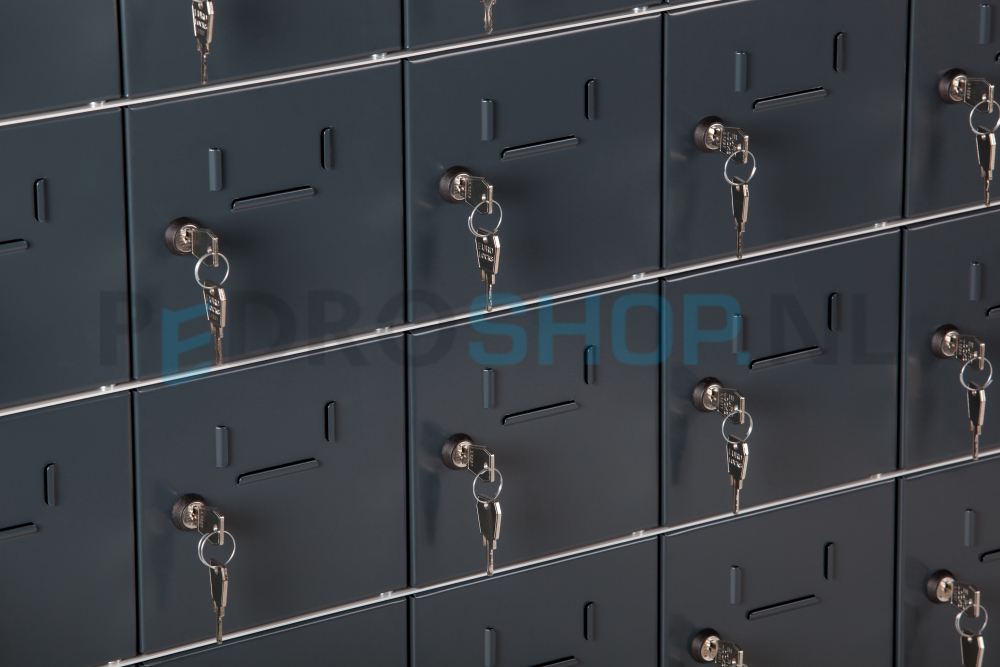 Deze lockerkast is geschikt voor het opbergen van kleine waardevolle spullen zoals telefoons, sleutels, portemonnees en andere kleine voorwerpen.