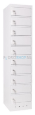De SQ Classic laptopkast – Deze SQ Classic laptopkast kent 1 kolom met totaal 10 laptopvakken. Deze SQ laptopkast is NIET voorzien van stroomvoorziening.