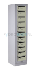 Deze postvakkenkast biedt ruimte voor het opbergen van poststukken en enkele eigendommen. De postvakkenkast kent 1 kolom, deze kolom is voorzien van 11 postvakken. Deze postvakkenkast kent voor de deuren de kleurcode: Kiezelgrijs Ral 7032 en voor de ombouw: Lichtgrijs Ral 7035.