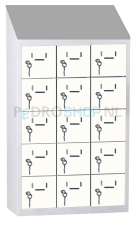 Met een afmeting van h109 x b62 x d30 cm biedt de kast voldoende ruimte voor 15 mini lockers, verdeeld over 3 kolommen met ieder 5 lockers. Elke locker heeft een afmeting van h16 x b15 x d27 cm.