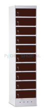 De SQ Classic laptopkast – Deze SQ Classic laptopkast kent 1 kolom met totaal 10 laptopvakken. Deze SQ laptopkast is NIET voorzien van stroomvoorziening.
