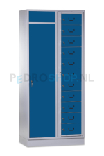 SQ combinatie kledingdistributie- en wasopvangkast, 11-deurs, blauw