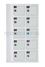 De afmetingen van de lockerkast zijn: h78*b39*d20 cm. De afmeting per mini locker is: h11,8*b12,6*d11,7 cm.